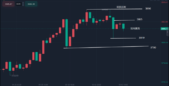 10月3日,周五,亚市早盘现货黄金小幅下跌,目前交投于3852.72美元/盎司附近。周四(10月2日)在创下历史新高的狂欢之后,黄金市场再度上演“高台跳水”的惊险一幕。周四(10月2日)现货黄金在触及每盎司3896.60美元的纪录峰值后急转直下,单日震荡幅度接近2%,最终小幅收跌。这场突如其来的波动,如同一盆冷水,浇醒了沉浸在牛市中的投资者。短线而言,投资者需要继续关注美国政府停摆的相关消息、美联储官员讲话和地缘局势相关消息。